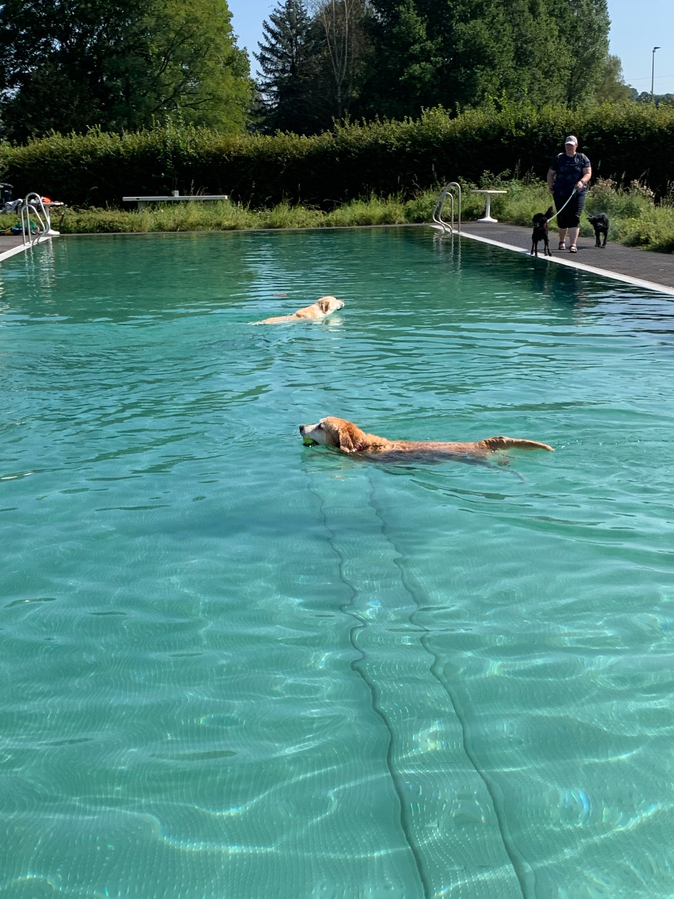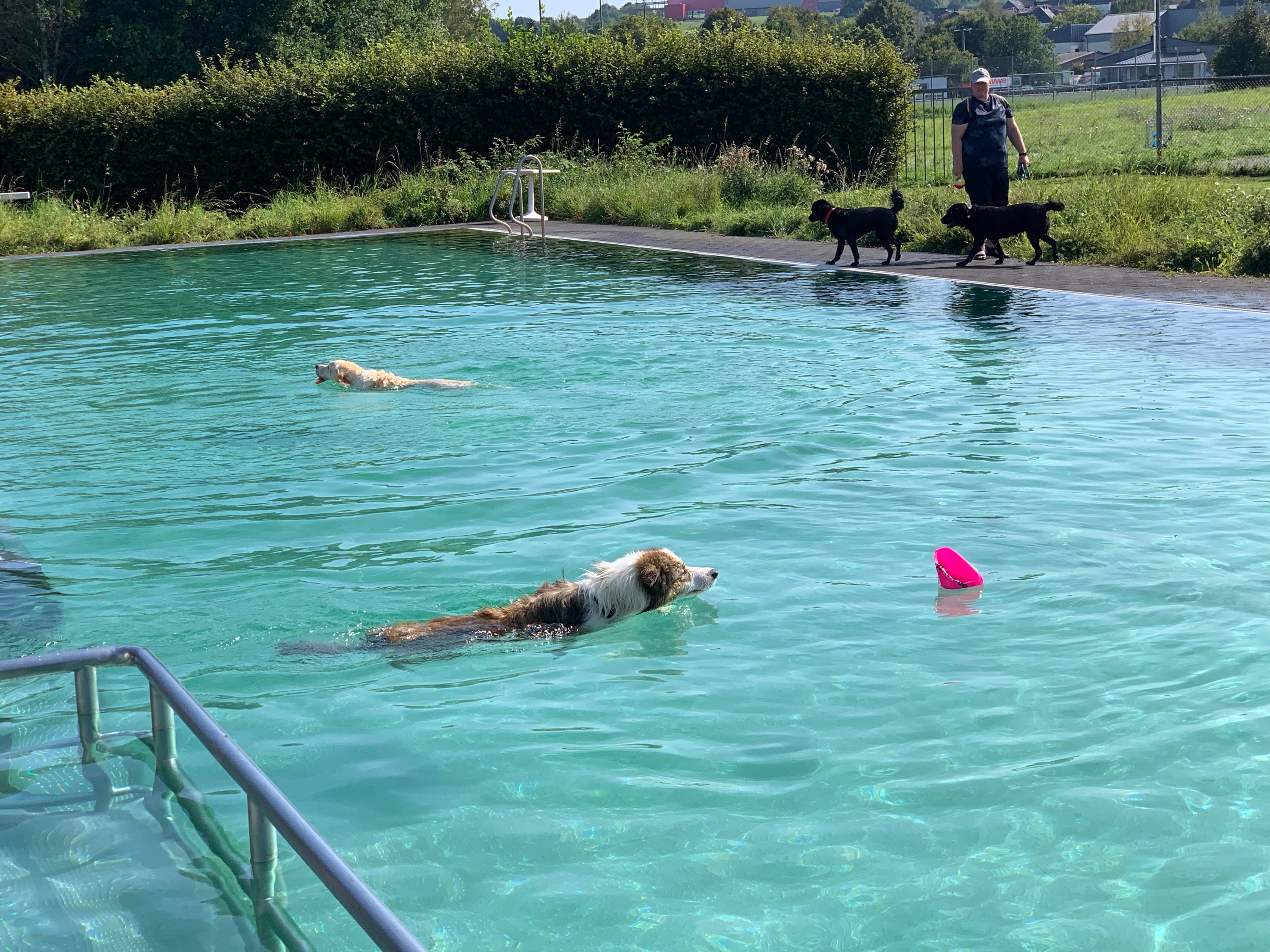 Spontan sind wir nach Urbach – schauen, wie das so geht: Hundeschwimmen …