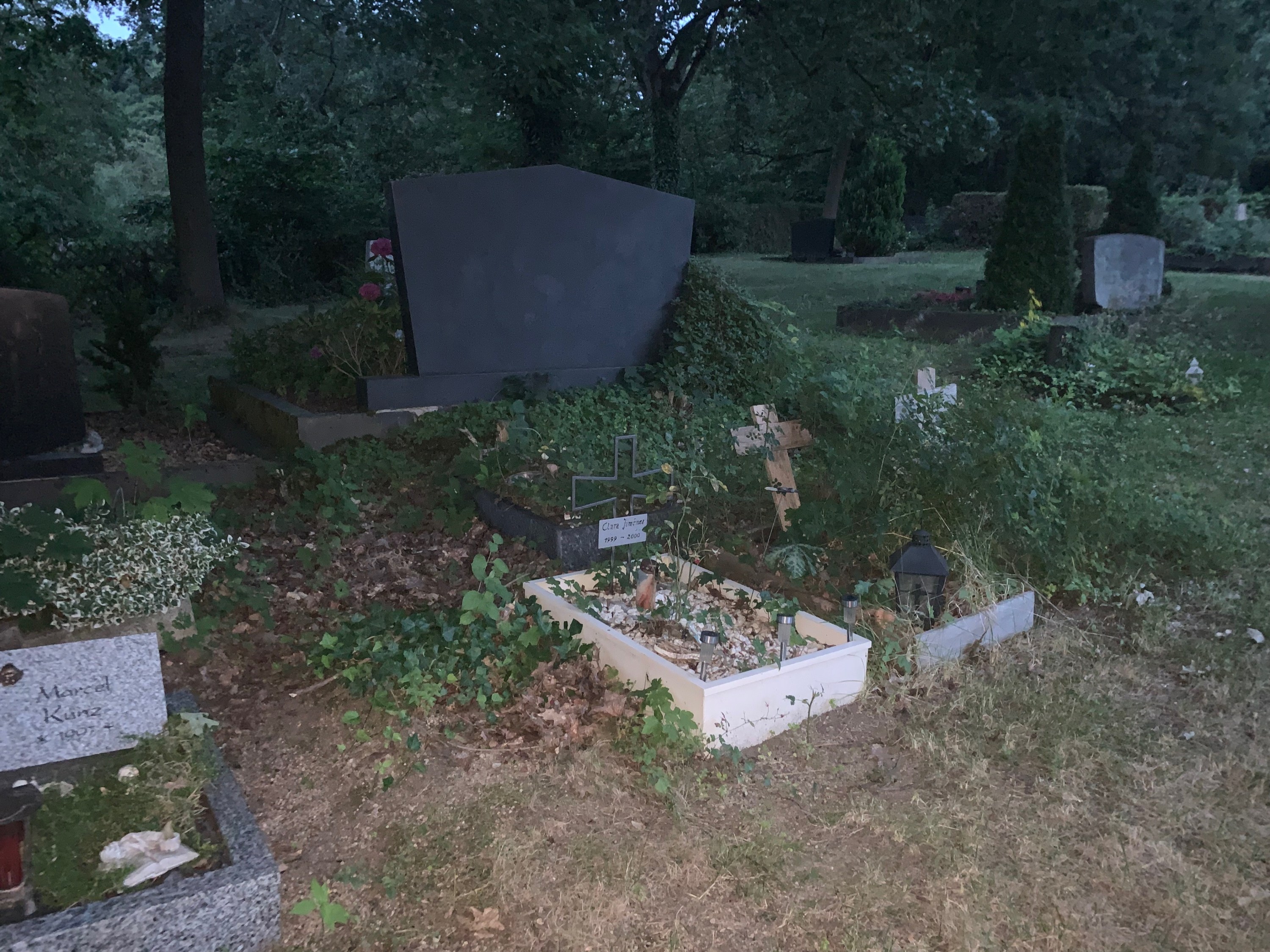 11. Juli: Hauskreis im Pfarrhaus – ich hab auf dem Friedhof geparkt. Nach dem Hauskreis gehe ich nochmal schauen, ob ich Claras Grab finden kann. Und tatsächlich – es ist noch da. 24 Jahe war ich nicht hier. 25 Jahre wärest du heute.